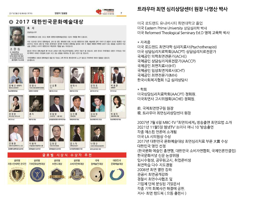 협력기관 : 미국 LA로드랜드대학교 미국최면사고시위원회 미국상담심리치료학회